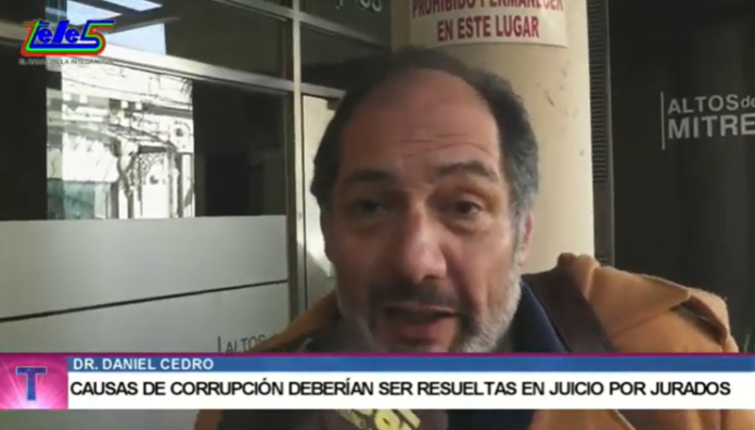 En una entrevista realizada cronistas de este medio, El Dr. Daniel Cedro, sentó posición de modificar la ley con respecto a los juicios por jurados. “Soy un firme defensor de juicio por Jurados, en realidad lo que deberíamos hacer es ir avanzando en cubrir la mayor cantidad de delitos y no de sacar delito” porque creo que “lo que debería hacerse ahora es acentuar el tema del sistema adversarial en el juicio por Jurados” incluso “lo más deseable sería que se baje esa pena y que incluya los delitos por ejemplo de corrupción. Me parece que es lógico que si una persona, un vecino común puede votar a un funcionario para darle un mandato para que eh gobierne, para que gestione en su nombre´, también es lógico que ese ciudadano pueda llegar a valorar la conducta de determinados funcionarios”, opinó y acotó que “pero para que esto sea posible hay que modificar la ley con la baja de, digamos de 20 a 10 años y no como hicieron ahora de sacar y llevar a un sistema abiertamente inconstitucional porque está previsto en la Constitución, está previsto en la reforma de 2008 y que, fundamentalmente, tiene que ampliar este sistema con la mayor participación del ciudadano”, sugirió el letrado.