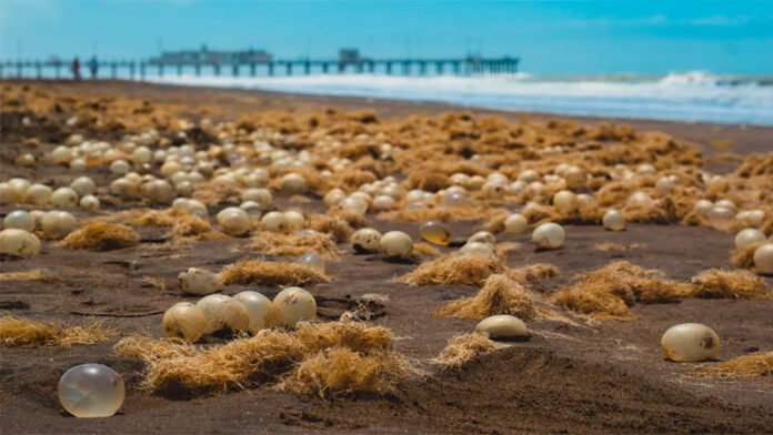 A simple vista, y para el ojo no entrenado, estos montículos amarillentos parecen algas o algún tipo de vegetación marina, sin embargo, los especialistas responden inmediatamente que no hay que hablar de algas, sino que se trataría de animales “simples”, como las medusas, que forman colonias en la zona submareal (por debajo de la marea) y que muy probablemente hayan terminado en las playas luego de alguna tormenta que barrió con el fondo marino.