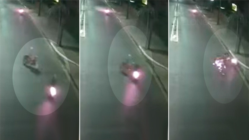 En la madrugada del domingo, dos motocicletas chocaron en la ciudad de Concordia. Una cámara de vigilancia ubicada en el lugar, captó el momento del fuerte impacto.