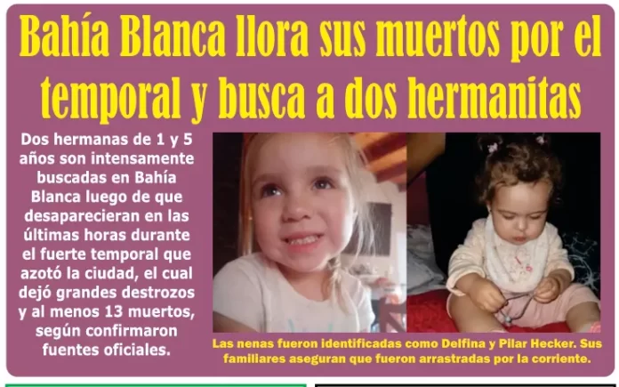 Buscan a dos hermanas de 1 y 5 años desaparecidas durante el temporal de Bahía Blanca