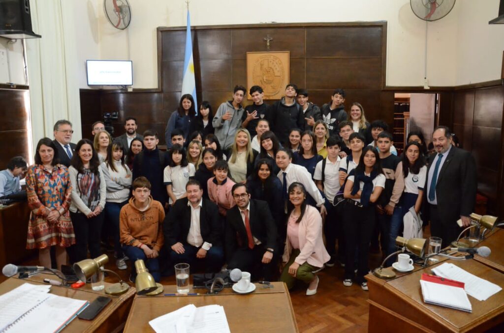 Además, el marco de las acciones que se impulsan para fomentar la participación democrática de los jóvenes, este jueves los estudiantes de 3er año de la escuela “San Martin” presenciaron la 31° Sesión Ordinaria del Concejo Deliberante y participaron del izamiento de la Bandera Nacional al inicio de la sesión.