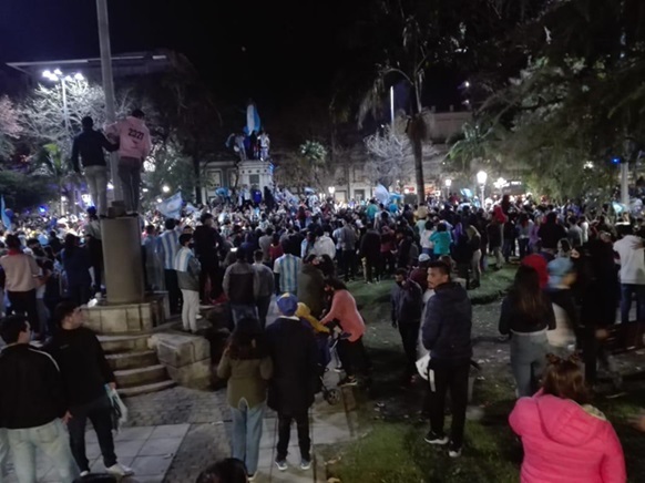 Los concordienses eligieron la zona céntrica, más precisamente la Plaza 25 de mayo, pero un cordón policial en el monumento a San Martín para que los que fueron a celebrar no suban ni pisen las plantas del lugar. Una multitud deseosa de alegría popular se congregó a festejar en la plaza principal, 25 de Mayo, desafiando el frío y las altas horas de la madrugada para celebrar el triunfo de la albiceleste. La interminable y emotiva noche también marcó la despedida de Ángel Di María de la Selección, a la que se sumó la conmoción por la lesión de Lionel Messi, quien salió llorando del campo de juego, perdiéndose por primera vez disputar una final dentro del campo de juego.