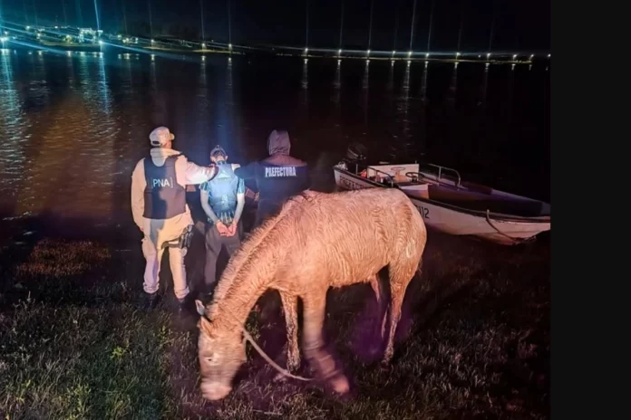 Durante un operativo nocturno en Concordia, Prefectura Naval Argentina interceptó una embarcación ilegal que cruzaba desde Salto con dos caballos.