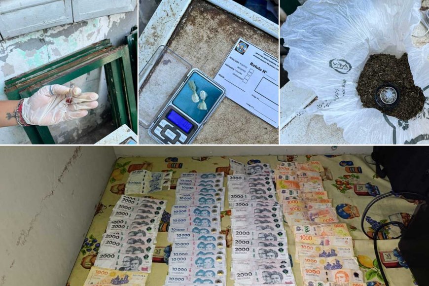 El accionar policial permitió el secuestro de sustancias estupefacientes, entre ellas marihuana y clorhidrato de cocaína, además de seis teléfonos celulares, $350.000 en efectivo, elementos utilizados para el fraccionamiento de droga y otros objetos de interés para la causa.