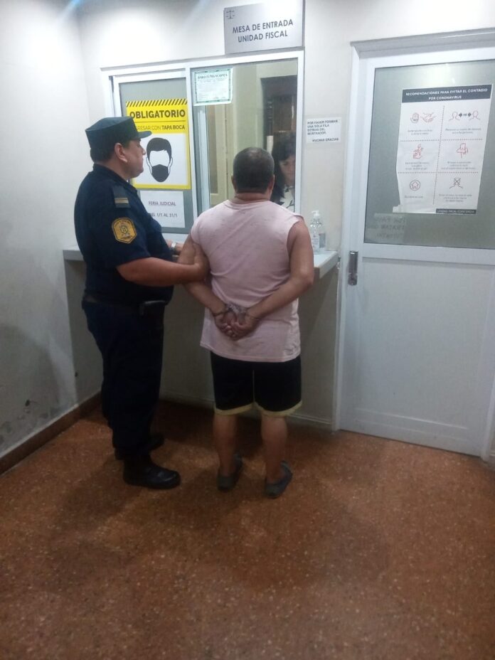 Once menos cuarto de la mañana de este jueves ingresó a la Fiscalía de Concordia, acompañado por una incalculable cantidad de torpes policías que no dejaban trabajar a la prensa, el imputado de violaciones seriales en perjuicio de sus dos hijastras de 9 y 3 años y de haber apuñalado a su tío en la noche de año nuevo.