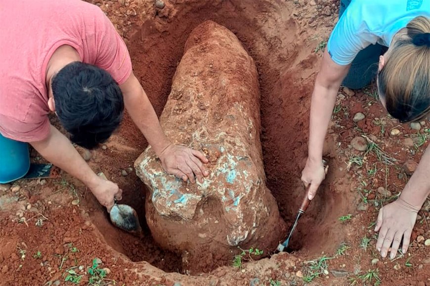En la tarde de ayer jueves, la Dra. Soledad Ramos (Bióloga e investigadora de CONICET en la ciudad de Diamante, Entre Ríos); la Dra. Daniela Kröhling- Geóloga e investigadora de CONICET-Universidad Nacional del Litoral – Santa Fe) y el Lic. Tomas Navarro (Lic. en Ciencias Naturales, Becario del CONICET- Centro de Inv. De la Plata), conjuntamente con personal del Parque San Carlos, de la Subsecretaria de Obras Publicas de la Municipalidad de Concordia, y personal de la Seguridad Ciudadana pudieron realizar la extracción de la mencionada pieza.