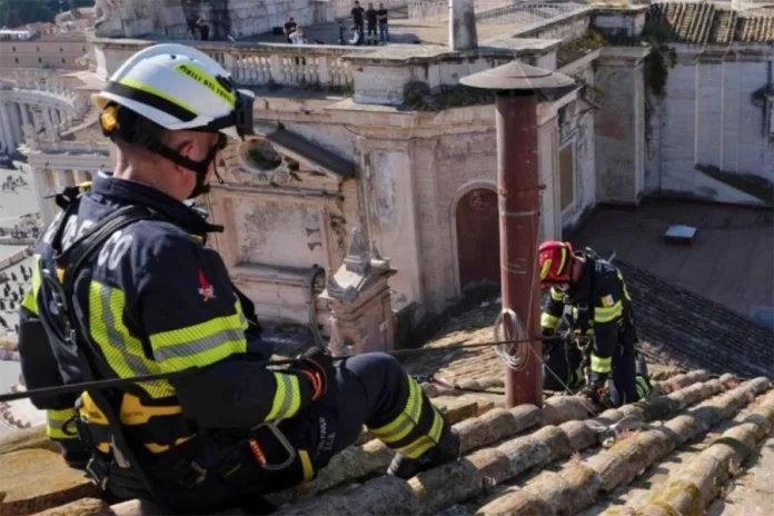 En este marco, el Vaticano está instalando la chimenea que anunciará desde la parte superior de la Capilla Sixtina el que será el sucesor del Papa Francisco.