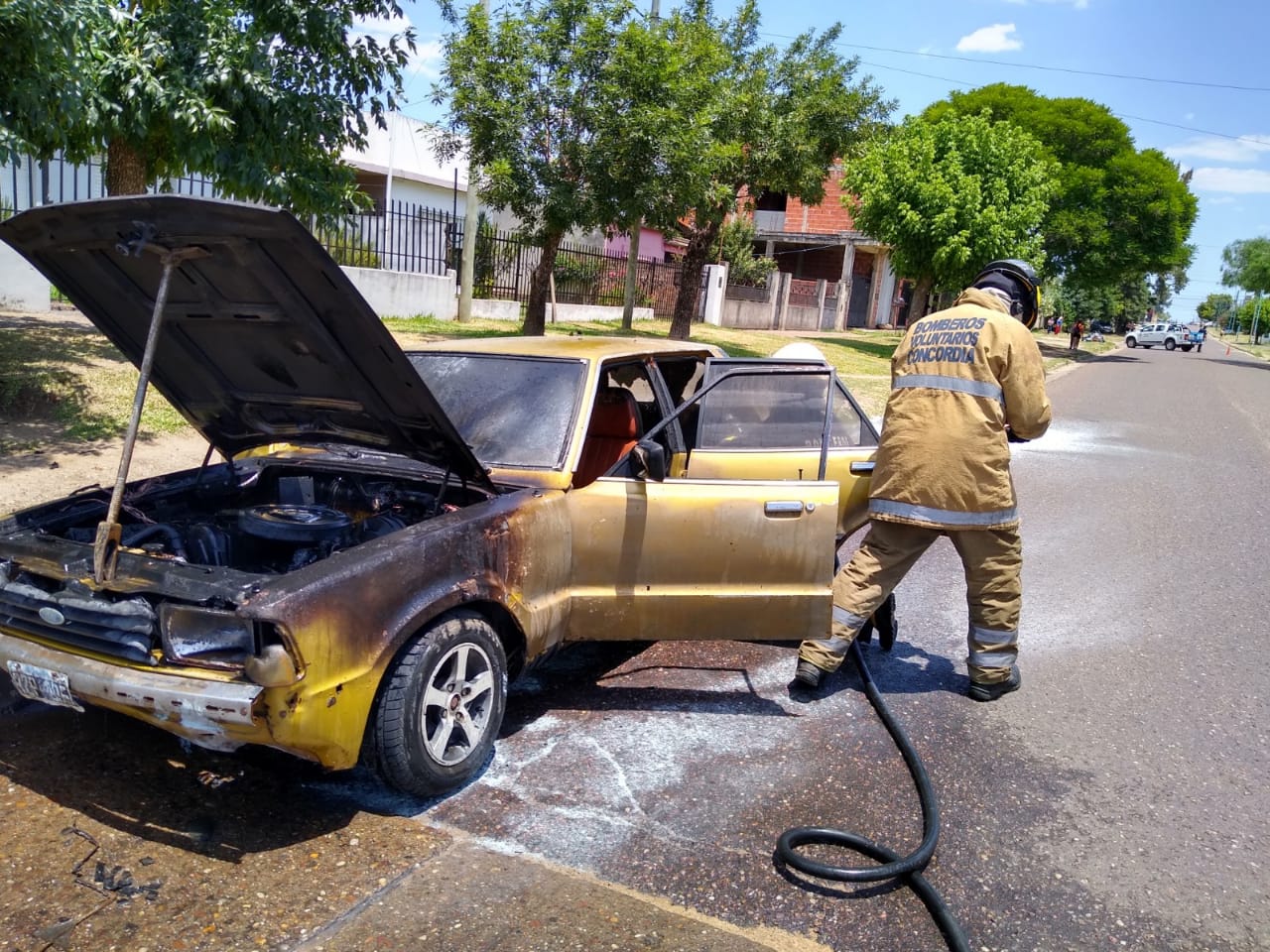 Un siniestro que causó serios daños en un vehículo se originó ayer viernes alrededor de las dos de la tarde, en una calurosa siesta sobre nuestra ciudad cuando un automóvil Ford Taunus tipo Sedan, por razones que se tratan de establecer, en la zona norte de nuestra ciudad se prendió fuego en la parte motriz del mismo provocándole pérdidas irreparables.