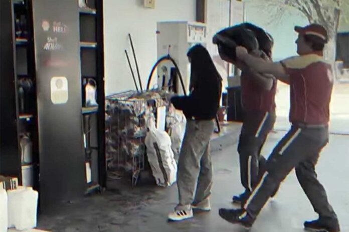En el video de la empresa, se ve a dos empleados de la Estación de Servicios Shell que secuestran a una mujer –le ponen una bolsa de consorcio encima-, la meten en la cajuela de una camioneta, el dueño del vehículo cierra el habitáculo y se marcha y los dos trabajadores quedan mirando la escena mientras toman mate- como parte de una pieza promocional.