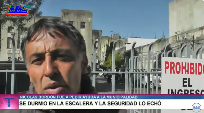 En diálogo con el periodista Mario Yrigoy de El Sol-Tele5, Nicolás Bordón, vecino de nuestra ciudad contó indignado que: “hoy (por ayer) alrededor de las 7 de la mañana me fui hasta la privada del municipio a pedir algo de comestibles y me quedé sentado en la escalera que va al segundo piso esperando que me atiendan y me quedé dormido” y en ese momento “llega uno de los seguridad del municipio y me dice que me retire del Palacio” y yo le dije que “cómo me puedo retirar si yo estoy sentado esperando que me atiendan y además esto del pueblo, es de la gente, es del Estado y yo solo quería pedir una ayuda ante mis necesidades y me dice que yo no podía estar ahí y yo me retiré tranquilamente como siempre” pero más tarde “vuelvo de nuevo para poder pedir un módulo de mercadería y me sale un seguridad de la Urbana, un irrespetuoso e insolente que está parado en la puerta, es un señor de edad que me saca a los empujones y pechazos y diciéndome que yo tengo prohibida la entrada al municipio de Concordia por estar sentado esperando a que vengan a atenderme”, rezongó el vecino.