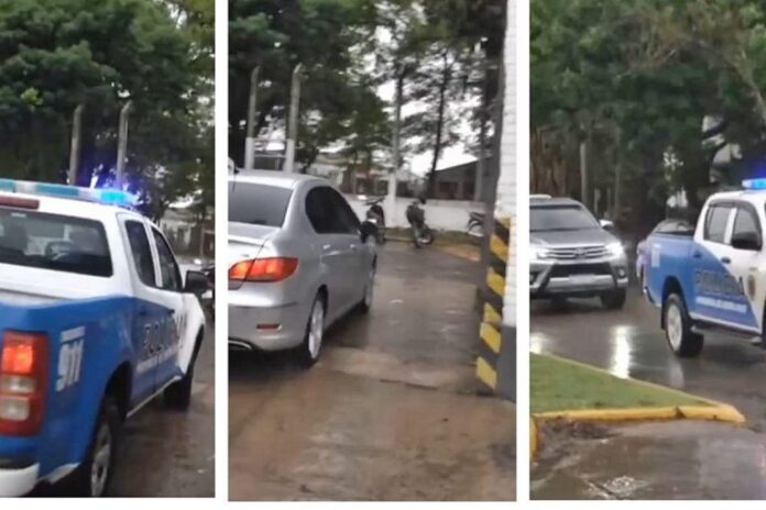 La comitiva estaba conformada por al menos tres patrulleros y dos vehículos de la fuerza sin identificación, un automóvil y una camioneta.