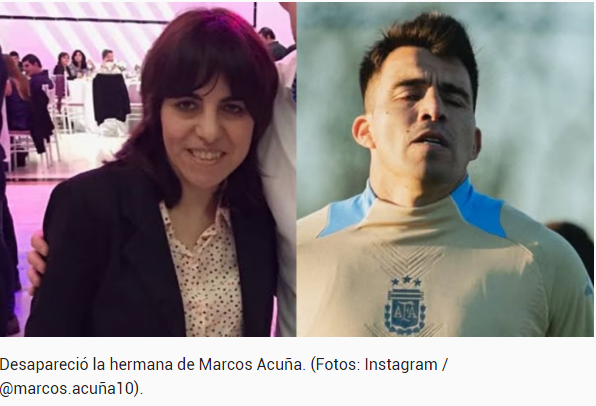 Fabiana Edith Muñoz, hermana por parte de madre del futbolista campeón del mundo Marcos “Huevo” Acuña, fue encontrada este domingo, según pudo confirmar CI. La mujer era intensamente buscada desde el viernes en la ciudad neuquina de Zapala.