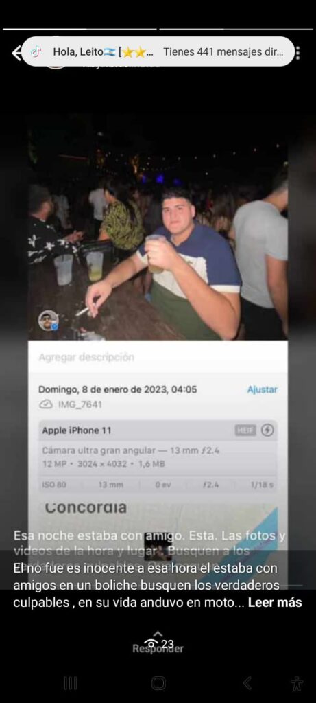 Al ser consultada la joven del ¿por qué? lo vinculan a su hermano Nicolás con esta causa, Laura explicó que: “al otro día de ese lamentable hecho, publicaron una foto de Nicolás y comentarios en una página que se llama “DELINCUENTES CONCORDIA” y desde ahí desde esos comentarios el fiscal, sin investigar, ordena que lo detengan, entonces Nicolás se entera de eso y se presenta solo en la policía y queda detenido, incluso -acotó Alejandra- su abogado le recomienda que lo haga porque él no tenía nada que ver con este caso”, insistió.