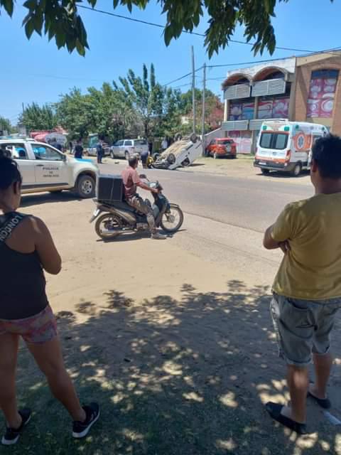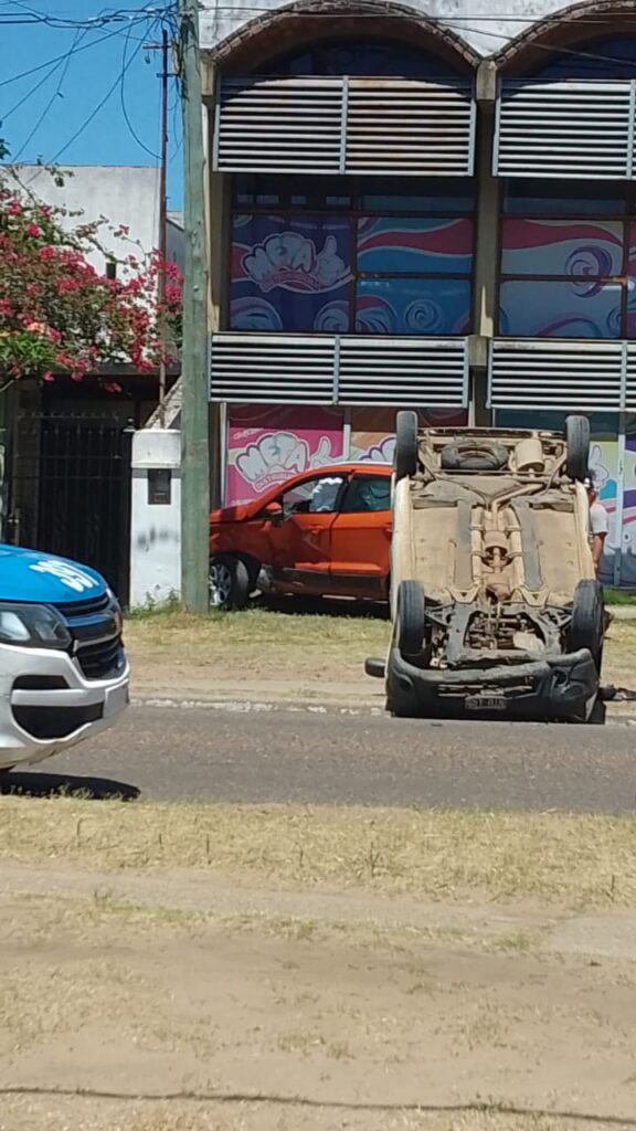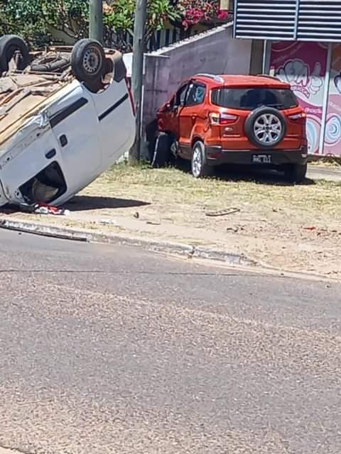 Al verse en problemas con la ley los ocupantes de la camioneta, en su desesperada huida, al llegar a la intersección de Avenida Tavella y calle Mega, colisionan con una camioneta marca Ford Eco Sport y tras el impacto el utilitario quedó con las cuatro ruedas para arriba.