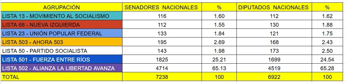 De acuerdo con los datos proporcionados a C-INFORMACION desde el comité de la UCR, el espacio libertario y de Juntos por Entre Ríos cosechó 4.714 sufragios para senadores y 6.922 para diputados, consolidándose como la principal fuerza política en la ciudad.