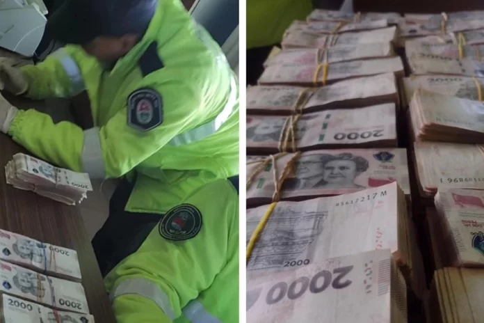 Durante un control vial desarrollado en el Puesto Caminero Bella Vista, en Concepción del Uruguay, efectivos de la Dirección General de Prevención y Seguridad Vial incautaron 63.592.000 pesos en efectivo que eran transportados por los ocupantes de un vehículo que se dirigía desde la provincia de Buenos Aires hacia Corrientes.