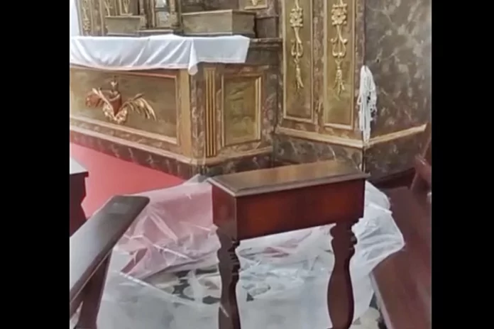 En ese sentido, agregaron que «el Padre José Luis tiene que desplazar todo en el altar, donde se encuentra el Sagrado Corazón de Jesús, porque se llueve». Y subrayando que actualmente se debió «retirar alfombras mojadas por la lluvia».