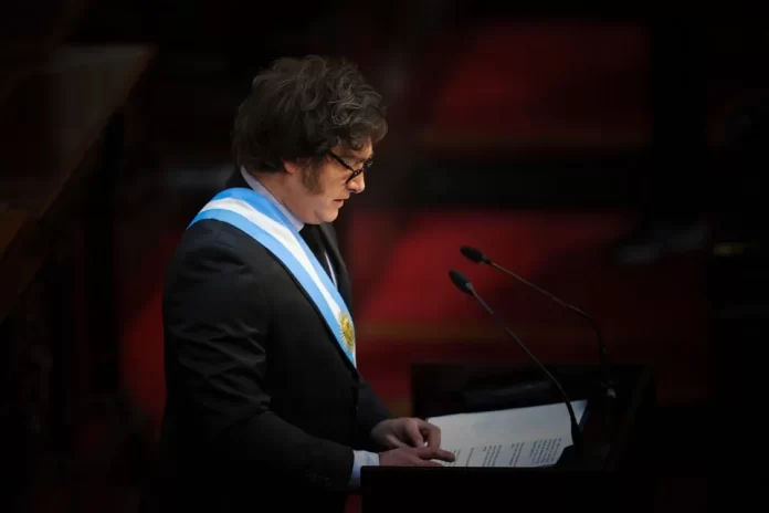 El mandatario reiteró conceptos económicos que viene esgrimiendo desde su llegada a la Casa Rosada en diciembre pasado, aseguró que el déficit “sólo se cubre con deuda, con más impuestos, o con emisión”, y que ninguna de esas opciones son viables en su proyecto.