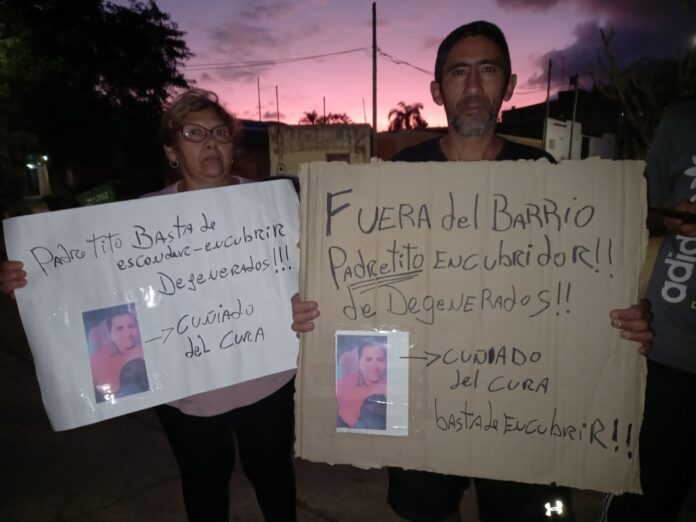 En su detallado relato cronológico, Núñez recordó que: “yo ya hice la denuncia en la comisaría Sexta de acá del barrio”, dijo y reiteró que “esto pasó el día martes pasadas las 8 de la mañana cuando mi hija se iba a la escuela, porque nosotros vivimos bien enfrente a la iglesia, yo siempre la acompaño pero justo ese día me fui temprano a trabajar”, contó y puntualizó que “cuando mi hija llegó a la escuela, una amiga de ella me manda un mensaje diciéndome que por favor la fuera a buscar a mi hija porque había pasado por la casa parroquial y el tipo le empezó a preguntar si ella (por la menor) “ya había tenido sexo alguna vez” y si “quería empezar a tener sexo con él que pasara para adentro de la casa parroquial”, contó y aclaró que “mi hija de 14 años recién cumplido se fue corriendo a la escuela y desde allá me avisaron que la vaya a buscar porque estaba en un ataque de nervios”, explicó el indignado padre de la menor.