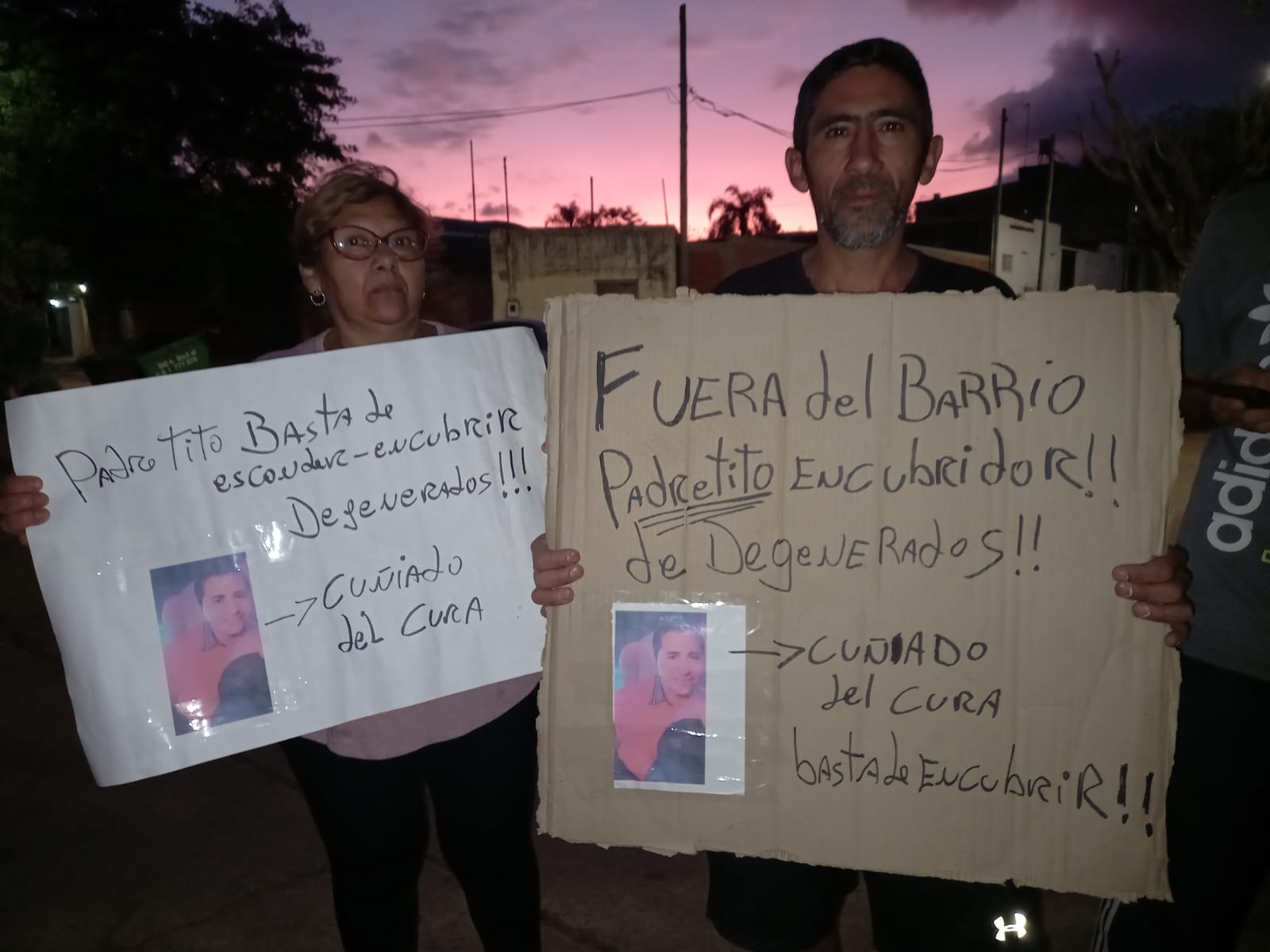 En ese mismo tono de impotencia e indignación, Núñez continuó su relato diciendo que: “yo me fui a la comisaría y lo denuncié al tipo ese mismo día a la mañana, posteriormente me fui a hablar con el cura y él me respondió que no sabía cuál era el apellido del tipo, siendo que el sacerdote hacía 2 años que lo tenía viviendo ahí porque es el marido de la hermana del cura, el tipo se llama P. Á. Lo que le quiso hacer ese pedófilo degenerado a mi hija es algo imperdonable”, dijo y reiteró que “yo ya hice la denuncia y al otro día me llegó una citación desde los tribunales, se ve que me hicieron una contradenuncia, al tipo ya le pusieron un abogado”, dijo y admitió que “yo me enteré por gente allegada a la parroquia que el cura lo escondió al tipo en una cabaña en Villa Zorraquín”, aseguró Núñez, al tiempo que reclamó: “yo quiero que la justicia actúe rápido porque justamente la justicia es más que lenta para estas cosas”, remató.