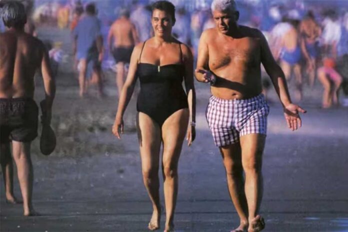 Cabezas tomó su cámara a la que le agregó una pesada lente y captó el momento en Yabrán y su esposa caminaban por la concurrida playa pinamarense.