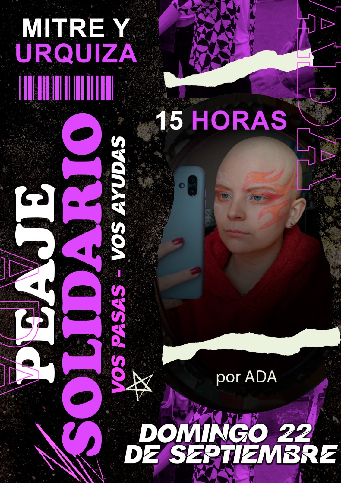 Con tu comercio o empresa, en auto, o acercándote a la plaza, participa del Peaje Solidario por Ada. Es muy importante para nosotros, contar con tu ayuda.