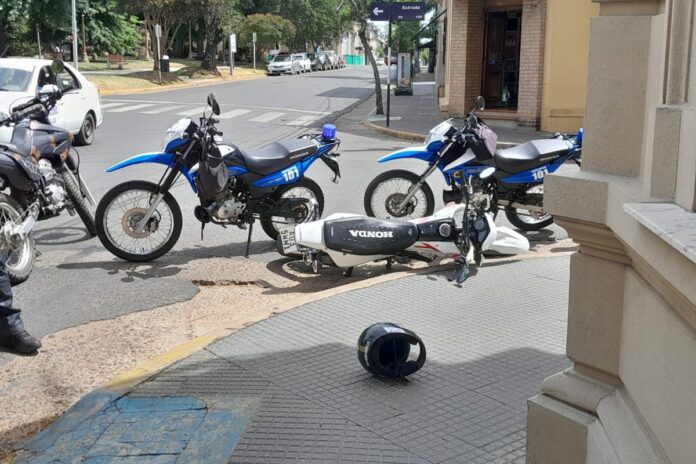 Dicha maniobra fue observada por un oficial de la Unidad Motorizada de la Policía y comenzó a seguirlo hasta la intersección de calles Urquiza y Estrada, donde chocan los dos y caen a la cinta asfáltica.