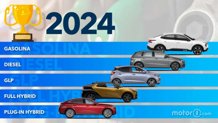 Sorprendentemente, el coche de gasolina más eficiente no es un híbrido ligero, sino un gasolina puro con el motor 1.2 turbo de 130 CV y un cambio automático con convertidor de par de ocho velocidades. Se trata del Citroën C4 X, que registró 4,10 litros cada 100 km, aunque hay que advertir de que esta versión ya no se vende en España, ya que se ha sustituido por la ‘mild hybrid’ de 136 CV.