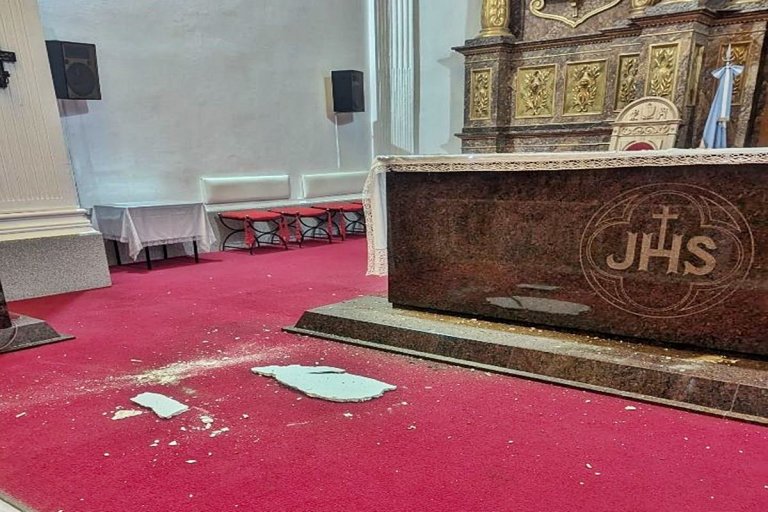 Según se informó desde esa importante y más que tradicional comunidad religiosa, el incidente ocurrió durante el martes y afectó el revestimiento de la cúpula, arriba del altar principal de la iglesia. Milagrosamente no hubo heridos.