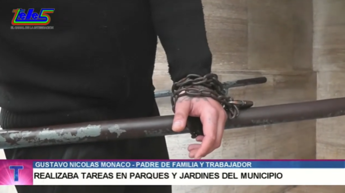 Un joven se encadenó en la zona de ingreso a la Municipalidad de Concordia en manifestación de reclamo ante las autoridades porque lo dejaron sin trabajo luego de 6 años de prestar tareas servicios como monotributista en parques y jardines del vivero municipal. El joven, padre de un niño operado del corazón, lamentó el momento que le toca vivir.