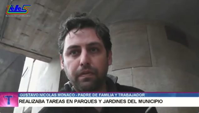 El periodista Mario Yrigoy presente en el lugar, registró el testimonio de Gustavo Nicolás Mónaco, quien expresó que: “me encadené acá en la municipalidad para reclamarle al señor intendente Francisco Azcué porque no me quiere recibir. Yo le quiero decirle al señor intendente que me echaron a la calle luego de haber trabajado durante 6 años en la municipalidad. Yo era empleado en Parques y Jardines como monotributista en la costanera, y luego estuve 2 años en el vivero municipal en parque y jardines y lamentablemente la señora Constanza Montoreano, con Patricio, director de parque y jardines, me dejaron afuera teniendo un menor operado del corazón que vive en Puerto Yeruá”, precisó el desesperado padre de familia.