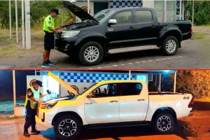 El vehículo fue interceptado a unos 15 kilómetros del puesto caminero. Tras hacerlo regresar al control vial, los efectivos constataron que se trataba de otra Toyota Hilux con la misma modalidad detectada en el primer caso.