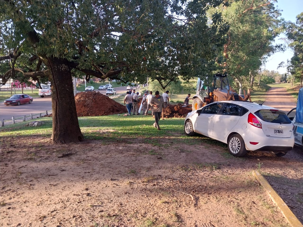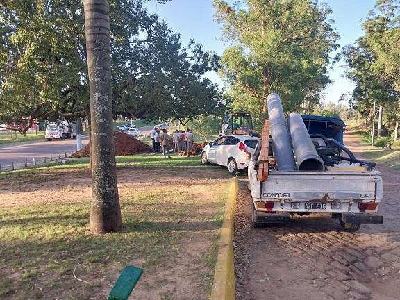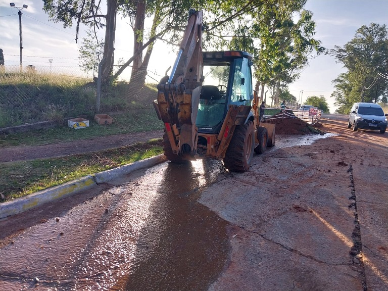 Paralelamente al trabajo que los operarios realzaban para subsanar la descomunal pérdida de agua, otra cuadrilla, retroexcavadora mediante, a última hora de la tarde abrieron un enorme pozo en la entrada a San Carlos para extraer una enorme válvula y desviar el curso del agua por otra red alternativa y as, según vecinos en las redes sociales, informaban que en algunos puntos de la ciudad, en algunas canillas comenzaba a salir agua.