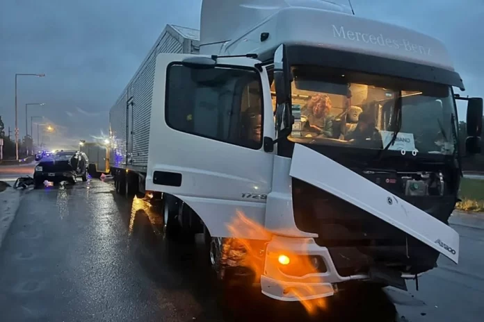 Este rodado de carga fue el que colisionó con una camioneta marca Jeep, modelo Grand Cherokee, en la que iba un hombre de 33 años, con domicilio en Villa Adela, al sur del departamento Concordia. En el mismo vehículo, aparentemente viajaban tres hombres jóvenes y dos de ellos fueron trasladados al hospital de Concordia.