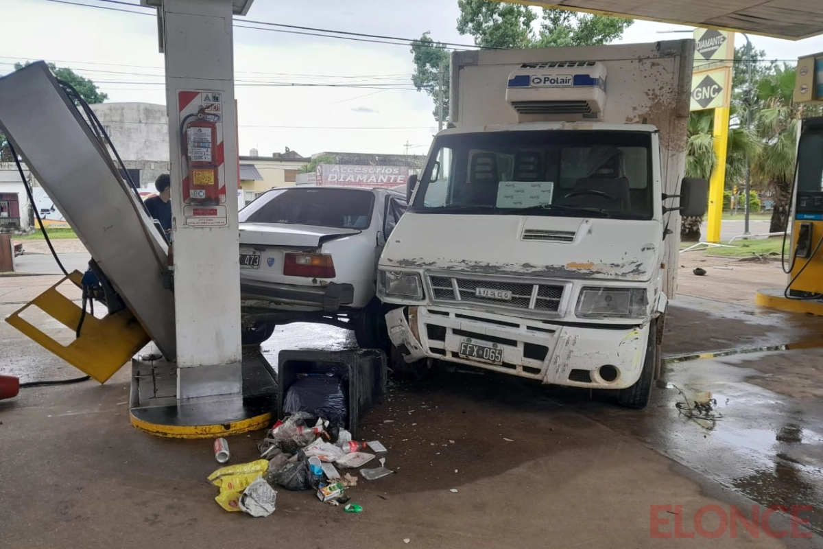 El conductor de un camión Iveco Daily 4912 perdió el control del rodado por una falla mecánica y causó un accidente en una estación de servicios ubicada sobre avenida Presidente Illia y calle Diamante, en Concordia. Como consecuencia del siniestro, afortunadamente, no se registraron lesionados.