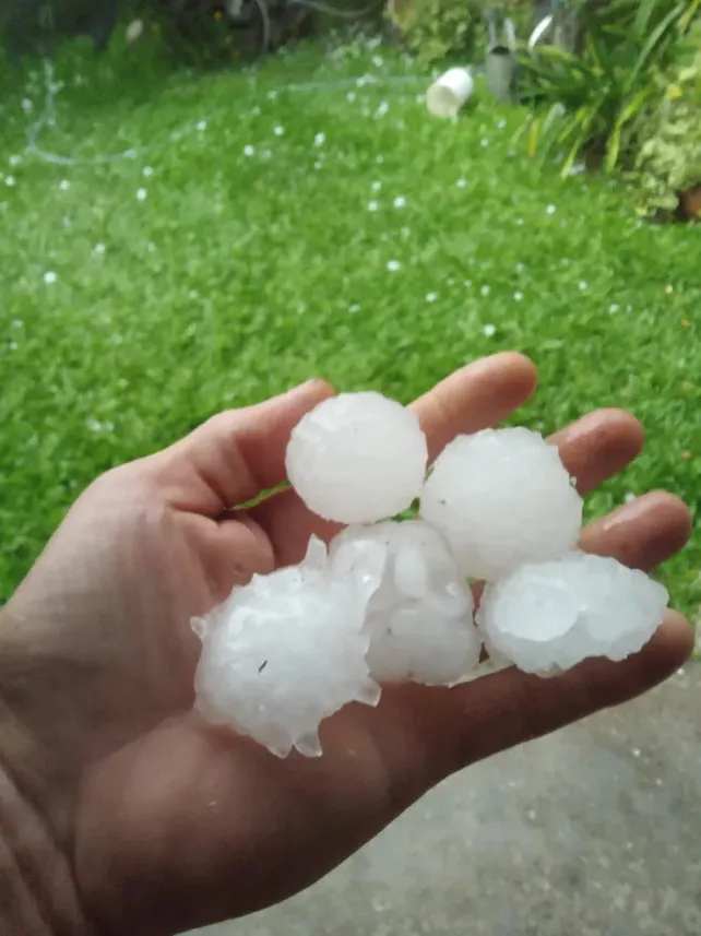 El tamaño del granizo fue considerable y ocasionó daños en algunos vehículos, invernáculos y construcciones, según los primeros relevamientos. Las autoridades continúan evaluando el alcance de los perjuicios.