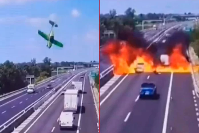 El accidente ocurrió a plena luz del día y quedó registrado por cámaras de seguridad de la zona. En las imágenes, que rápidamente se viralizaron en redes sociales, se observa cómo la aeronave pierde estabilidad, cae en picada y se convierte en una bola de fuego al estrellarse contra la calzada, generando momentos de pánico entre los automovilistas.