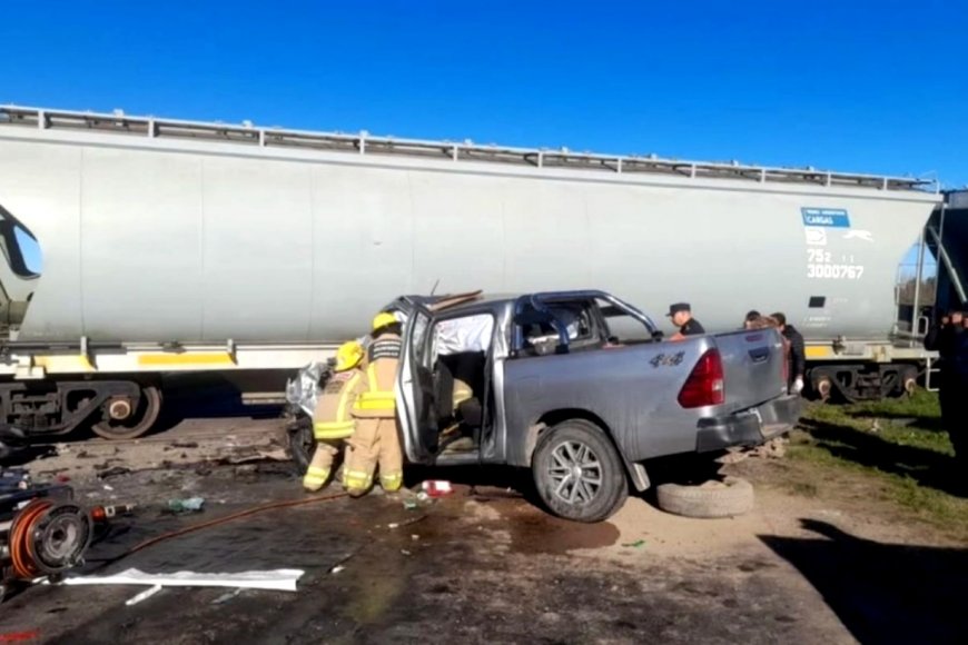Tres personas murieron este sábado en un choque entre una camioneta Toyota y un tren de carga de cereales, a la altura del kilómetro 190 de la ruta nacional 12 y el cruce ferroviario de Médanos (departamento Islas), en el sur de Entre Ríos.