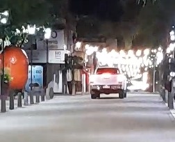 El hecho ocurrió durante la noche del viernes y quedó registrado en video por un vecino. El conductor recorrió varias cuadras de la zona peatonal.