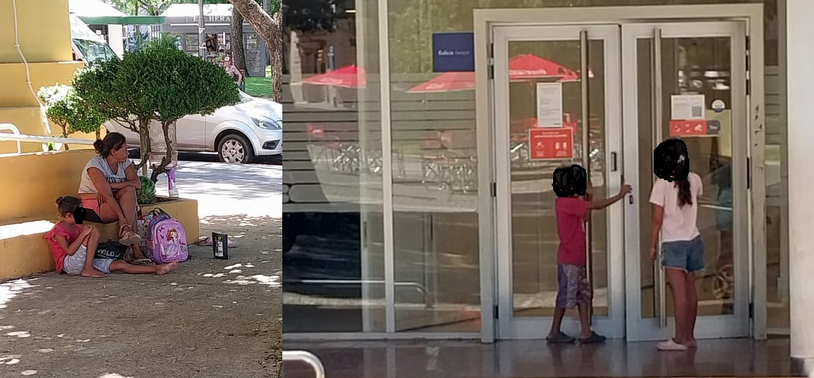 Causa indignación ver a una madre con sus pequeños hijos (dos nenas y un varoncito) pernoctando todo el día en la plaza principal de Concordia. Se trata de una mujer que, según informaron a CI, se instala en la plaza muy temprano por la mañana y manda a sus pequeños hijos a pedir limosnas a los transeúntes y automovilistas o abriéndole la puerta a la gente cuando entran a una entidad bancaria y recibir unas monedas. Se dice que la madre los explota a los niños para que salgan a recaudar y que al final del día tienen que rendirle cuenta a ella de las donaciones recibidas, pero parece que los funcionarios y las instituciones que se golpean el pecho defendiendo los derechos del niño “no saben no contestan”, no obstante, la única institución que se hizo eco de la versión que nos llegó, fue el Jefe de Policía de Concordia, Comisario José María Rosatelli.
