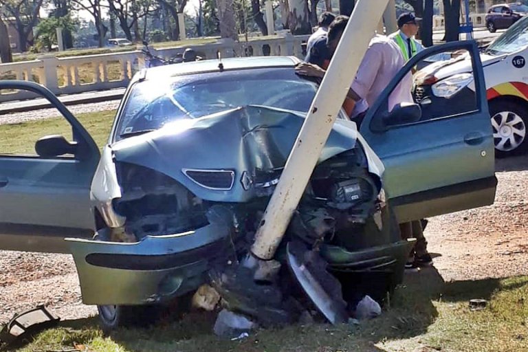 A prima facie, debido a la magnitud de los daños materiales sufridos tanto en el vehículo como en la luminaria, el rodado se habría trasladado a gran velocidad.