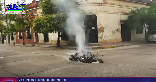 Un grupo de vecinos que viven en las proximidades del barrio Puerto, más precisamente, en las calles Buenos Aires y Colón, juntaron la basura que los vecinos sacan a la vereda y la corrieron hasta la bocacalle de las arterias mencionadas, sobre la boca de tormenta y la prendieron fuego en señal e reclamo al municipio porque, según ellos, no pasa el camión recolector de basuras y queda hasta que entra en estado de descomposición.