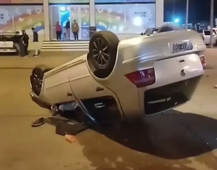 El espectacular vuelco de un automóvil moderno en las calles Mario Gatto y C.Veiga ocurrido alrededor de las 20.30 de esta tarde de sábado en Concordia, no arrojó heridos de gravedad pero si daños materiales en el vehículo.